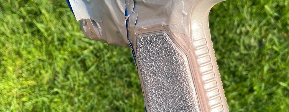 P80 Frame: Use a green weenie (scotch brite) to scuff up only the smooth surfaces you plan to dip. This produces an anchor tooth onto the smooth surface for primer to adhere. Do not scuff stippling. Wash the frame to remove any oils. I use simple green or dish soap and a nail brush to scrub stippled areas. Recommend donning gloves to protect surfaces from transferring hand oil onto surface. Let dry. Tape off areas that will not be painted. Include an attached handle to aide in painting & dipping.